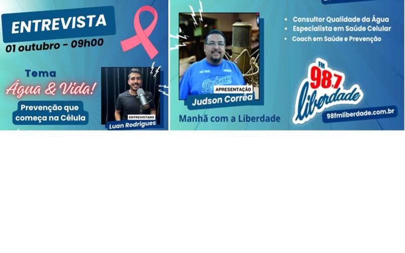 No mês do Outubro Rosa, a Rádio Liberdade FM 98,7 traz um bate-papo essencial sobre como a qualidade da água impacta a saúde celular e, consequentemente, a prevenção de doenças. O especialista Luan Rodrigues, ao lado de Wanda Bárbara, explica por que hidratação adequada e água de boa procedência colaboram para reduzir estresse oxidativo, preservar o equilíbrio do organismo e apoiar a saúde da mulher.